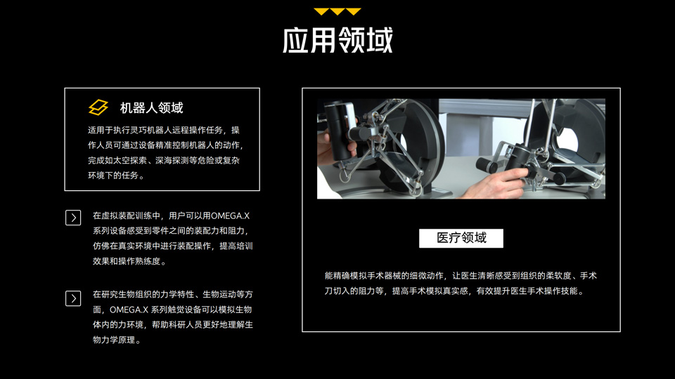制造高精度的力反饋接口,也稱為觸覺設備,通過觸覺將數字信息傳輸給用戶。 這種觸覺交互形式極大地增強了使用和與復雜 2D 和 3D 應用程序交互的便利性,因為我們的觸覺設備能夠非常精確地呈現所有形式材料的曲率、剛度和紋理特性。 ?