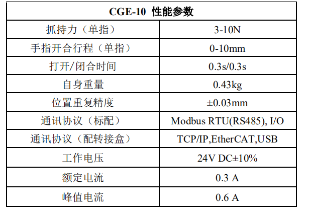 CGE-10 電動(dòng)夾爪硬件參數(shù):