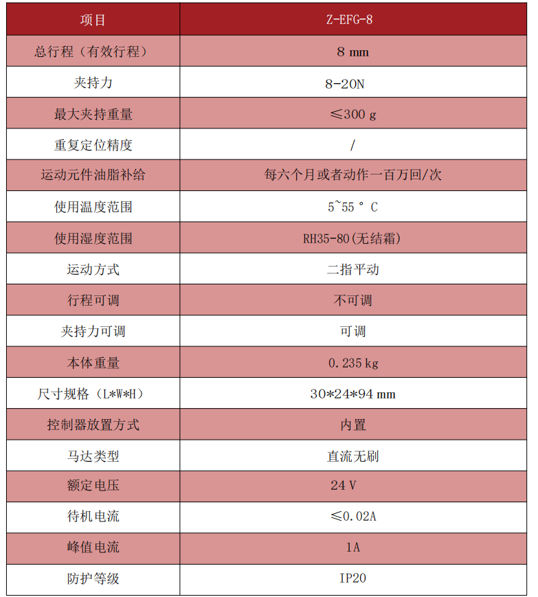 慧靈Z-EFG-8夾爪的參數: