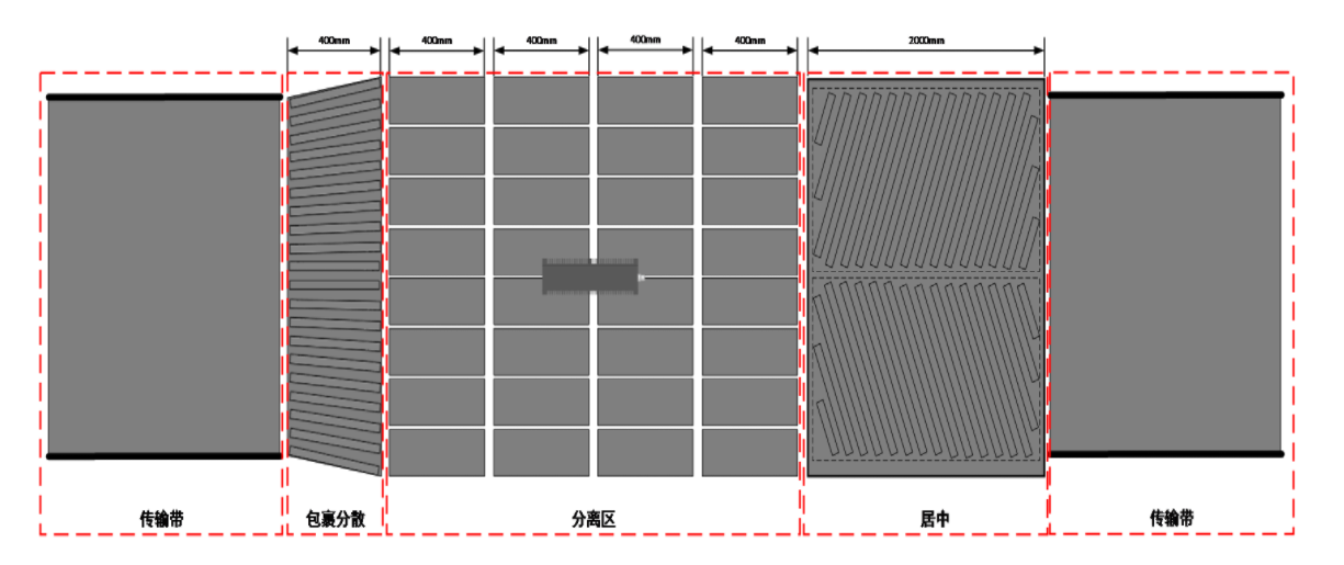 包裹分散:主要將粘連通過的包裹拉開少許間距,用于優化單件分離的分離效果,且防止包裹擁堵時卡包;