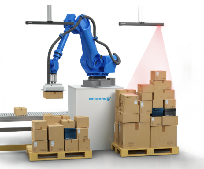 Photoneo3D視覺掃描裝滿箱子的整個托盤,并將掃描傳輸?shù)?D紋理數(shù)據(jù)集。然后,該掃描由Photoneo的機器學(xué)習(xí)算法處理,該算法在5000多種盒子上進行訓(xùn)練。AI立即識別每個盒子并向機器人發(fā)送命令。使用專門開發(fā)的通用夾持器,機器人執(zhí)行拾取動作的精度為+-3 mm。這樣,它可以在一小時內(nèi)卸下1000箱貨物,準確率為99.7%。