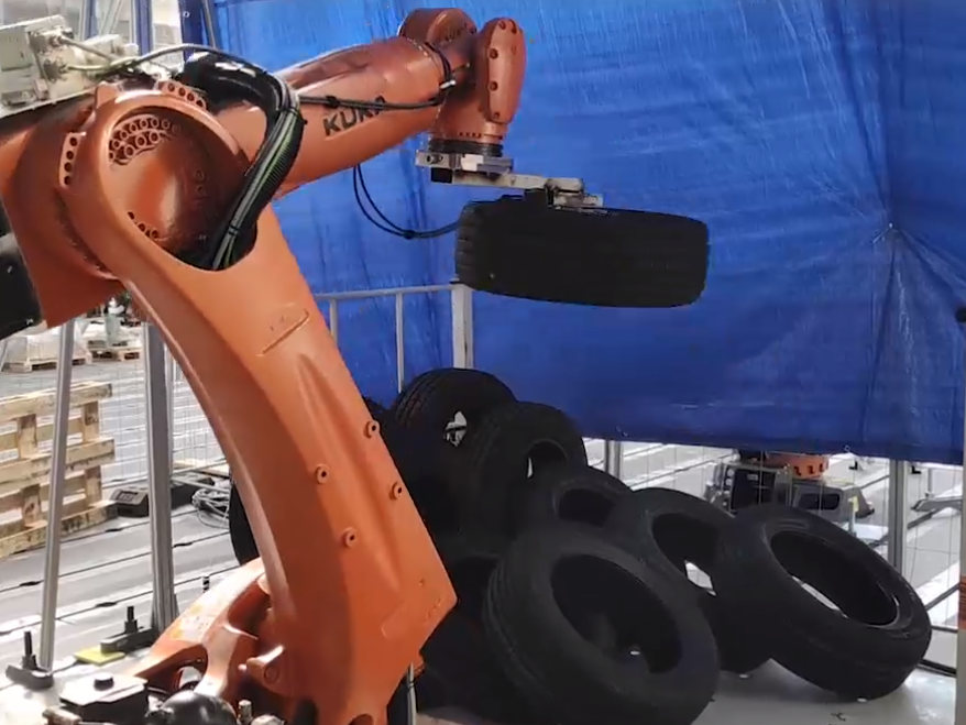 橡膠物體的自動(dòng)化處理集中在輪胎硫化的后生產(chǎn)階段。輪胎離開(kāi)壓機(jī)并離開(kāi)硫化過(guò)程后,需要對(duì)其進(jìn)行有效處理,并將其放在運(yùn)輸托盤(pán)上。使用Photoneo 3D相機(jī)后視覺(jué)引導(dǎo)機(jī)器人和先進(jìn)的定位技術(shù),不再需要用人力來(lái)處理重物。用“眼睛”來(lái)利用機(jī)器人的力量,高效地處理后期沉重的搬運(yùn)作業(yè)。