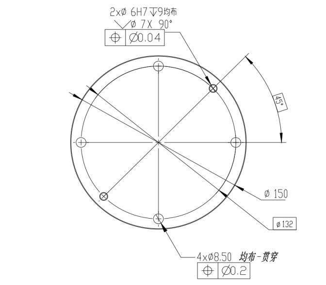 工具法蘭有四個 M6 螺紋孔和?個 Ф6 定位孔,可以?便地將夾具安裝連接到機(jī)器? 末端。?具法蘭機(jī)械尺?如圖1-3所示。