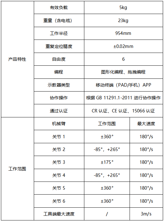小巧輕便:自重23kg,負載5kg,工作半徑達到954mm;
