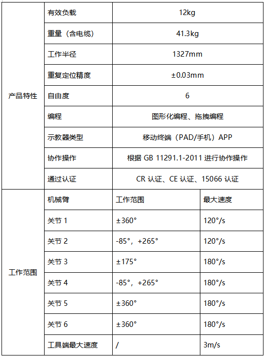 JAKA Zu 12s協(xié)作機器人產(chǎn)品參數(shù)