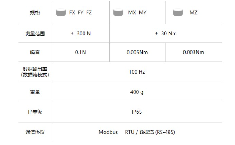 Robotiq FT 300-S力扭矩傳感器的參數:
