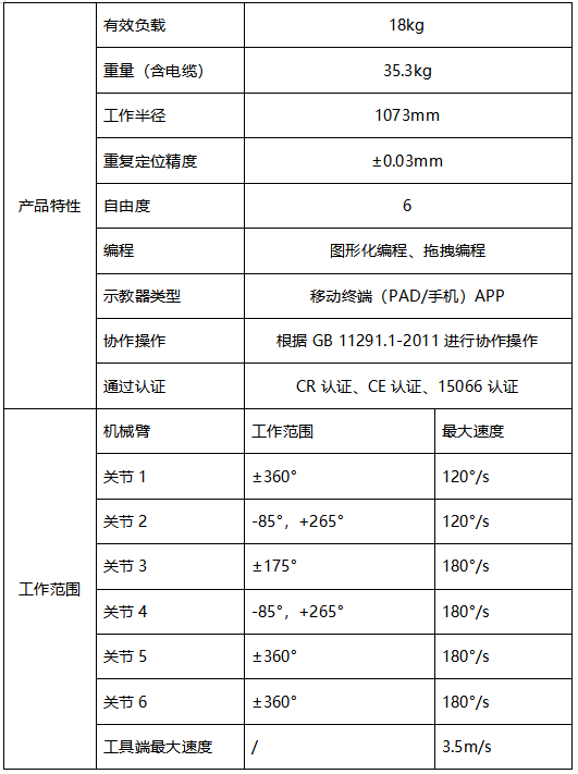 JAKA Zu 18s協(xié)作機(jī)器人產(chǎn)品參數(shù)