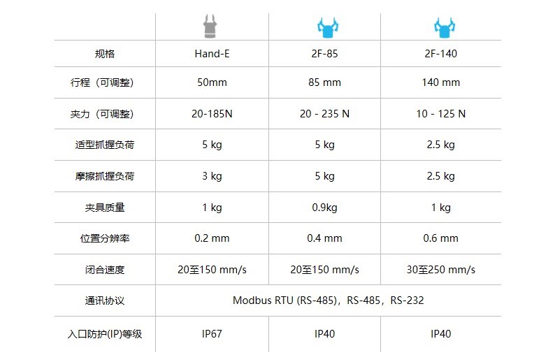 Robotiq 產品的參數: