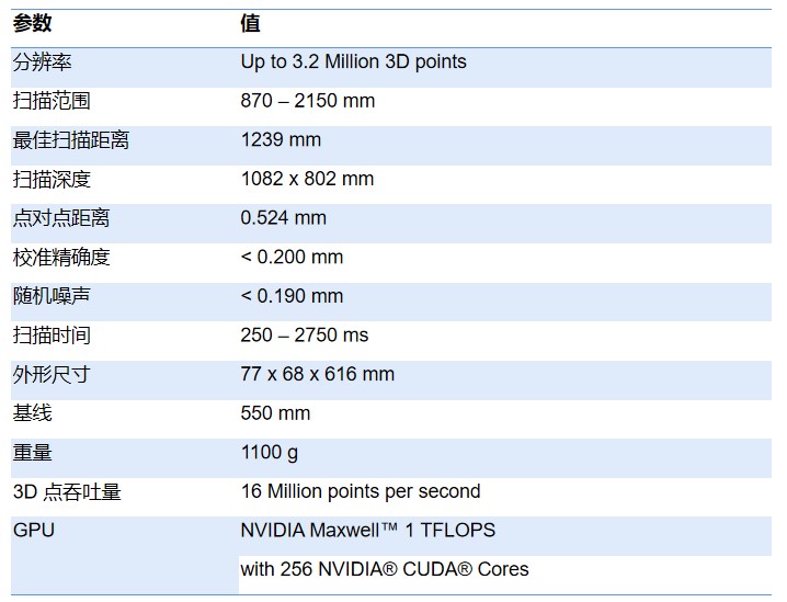 Photoneo PhoXi 3D Scanner L參數如下: