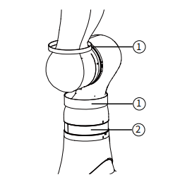 xMate 3 機器人本體各軸回轉位置裝有黑色橡膠套,標定前需將各軸的橡膠套撥放至連桿上-。