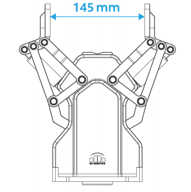 在適配手爪默認(rèn)的標(biāo)準(zhǔn)指尖時(shí),夾爪完全閉合時(shí)指尖距離為 0mm,夾爪完全打開后指尖水平間距為 145mm。在運(yùn)動(dòng)過程中,兩關(guān)節(jié)同步對(duì)稱運(yùn)行,在運(yùn)動(dòng)過程中關(guān)節(jié)手指可在指定位置停止。當(dāng)夾持工件尺寸超過 AG-145 最大夾持位置時(shí),用戶可根據(jù)實(shí)際情況變更關(guān)節(jié)手指,從而滿足夾持要求。