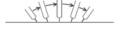 ?直線軌跡在直線插補(bǔ)示教的程序點(diǎn)中移動(dòng)。若?直線插補(bǔ)示教機(jī)器?軸,移動(dòng)命令是MOVL。直線插補(bǔ)常在焊接、搬運(yùn)等作業(yè)中使?。