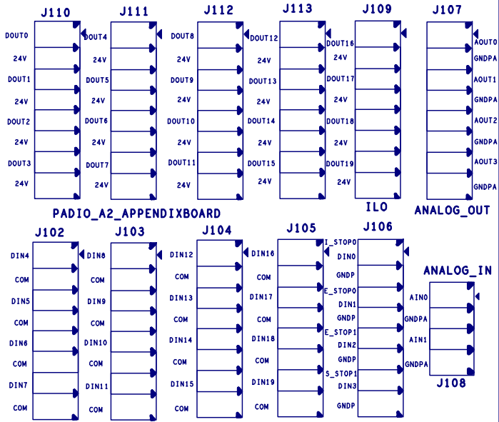 可配置I/O指的是數(shù)字輸入可以配置成NPN和PNP 兩種輸入模式,使用IO板上J22來 實現(xiàn)選擇。默認為NPN輸入,即J22短路24V和中間端子;可以使用短路帽短路GNDP和 J22中間端子使得輸入配置為PNP模式。