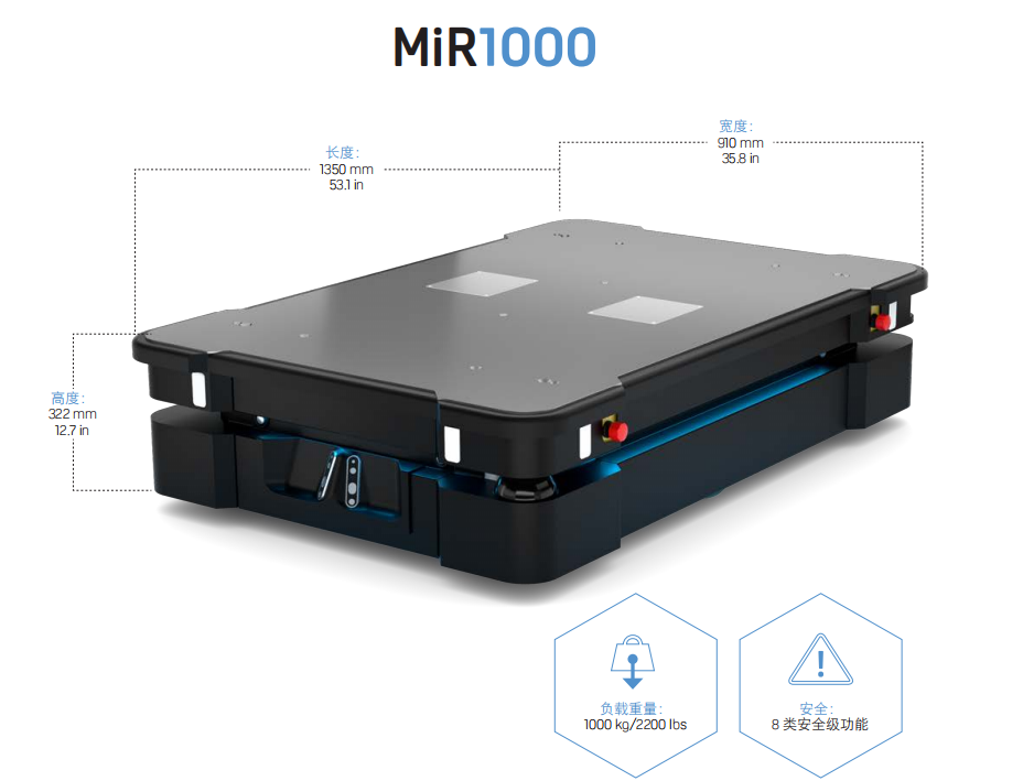 MiR500 和 MiR1000 可與 MiR 生產的托盤舉升器一起部署,并能夠自主拾取、運輸和交付托盤。這意味著協作式機器人將能夠代替傳統的叉車和卡車。很多企業都因為叉車和卡車時常存在安全風險,希望將其從生產車間中淘汰。同時,MiR500 和 MiR1000 還可自主移動,也就是說它們無需人工駕駛,從而能夠解放人工勞動力以執行更有價值的生產任務,并優化內部作業流。