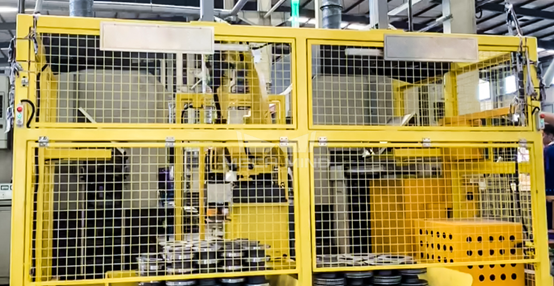 采用顯揚科技自主研發高速高清3D機器視覺設備HY-M5能很好地實現自動化上料過程。采用HY-M5 3D相機可輕松應對現場多種不同品規的剎車盤,視覺引導機器人從深框中抓取無序堆疊的剎車盤,并識別其正反,隨后放置于翻轉臺,經翻轉后放置于另一料框,能讓工廠實現全自動化上下料無人生產,提高效率,節省人力成本。