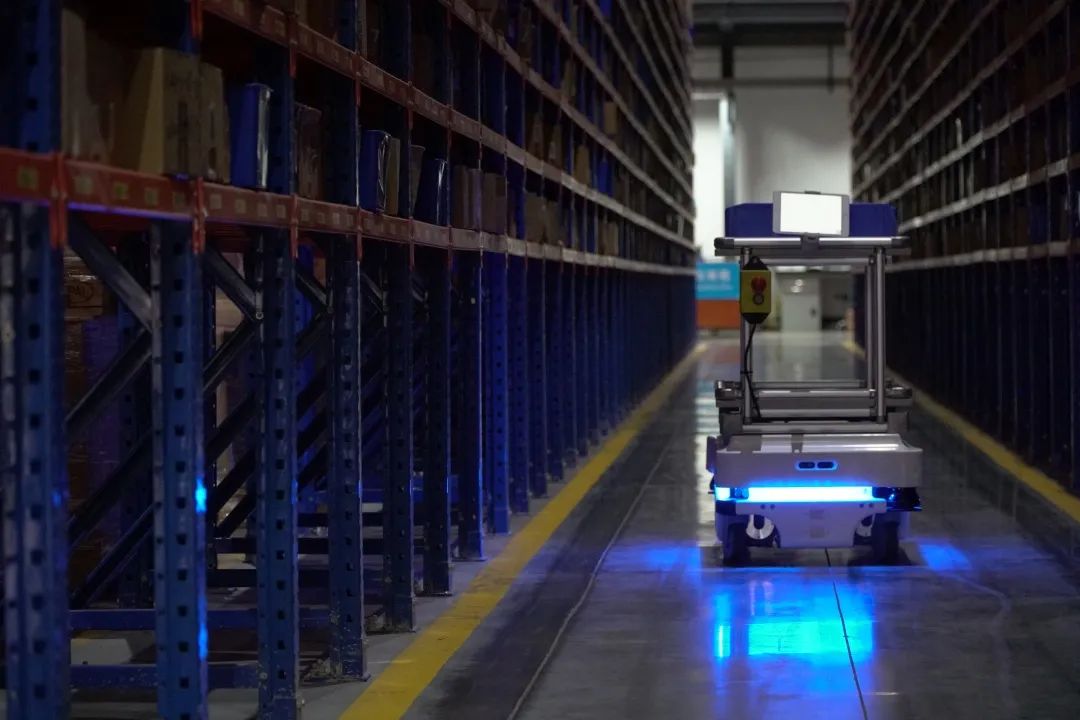 機(jī)器人與倉(cāng)庫(kù)內(nèi)的叉車協(xié)作,機(jī)器人可以在一定高度從定制托盤架上拾取并運(yùn)送托盤,而叉車主要從更高的托盤架上拾取托盤,因此工作是分開(kāi)的,叉車駕駛員可以專注于更復(fù)雜的任務(wù)。