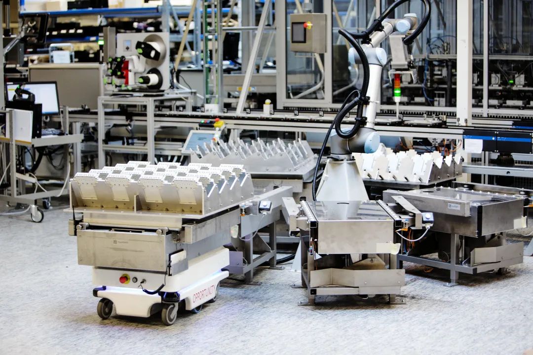 MiR在生產車間對傳統傳送帶發起了挑戰,在生產線和機器人加工單元之間輸送著半成品和成品。輸送帶的頂部模塊部署在機器人上,使其能夠在機器人加工單元處自動傳送和接收物品。全自動的靈活性解決方案可確保最大限度地利用產能。MiR 機器人目前已成為加工單元之間自適應的一環。