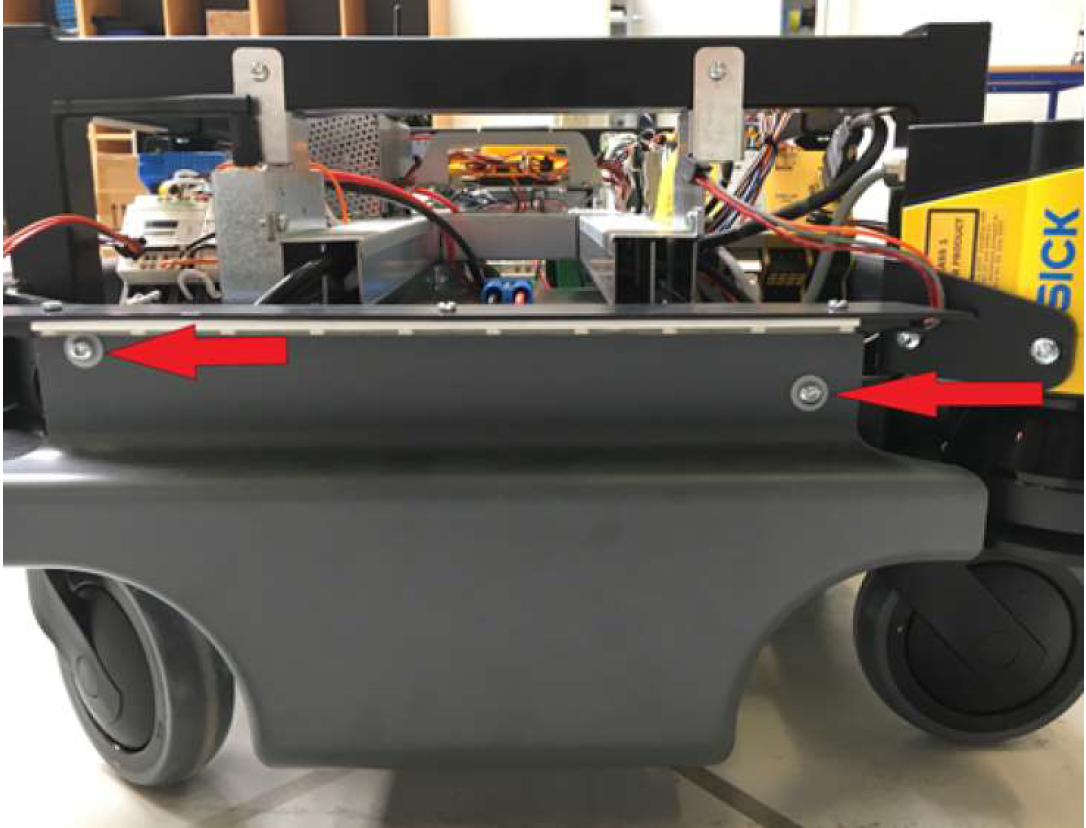 2. 移除MiR機器人后部的第二個金屬擋條。