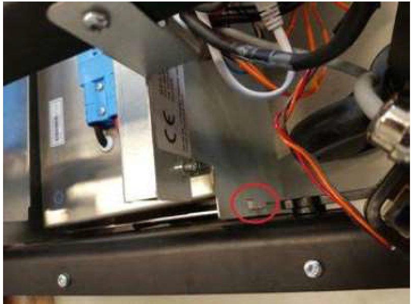 3.確保MiR機器人原裝電池已充滿電。然后斷開電池(移除藍色的接頭)。