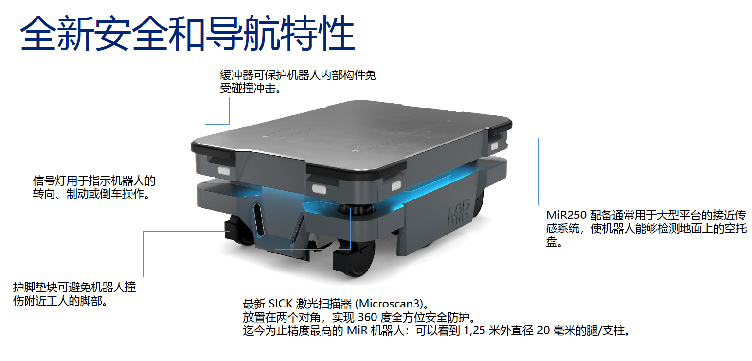 MiR250 是一款更靈活的 AMR 可以全天不間斷工作,并且設置非常簡單,有助于提高生產率 。其尺寸更小,適應性更強,有助于優化內部物流且無需改變設施布局 。創新的MiR250 采用最新的技術和便于維護的設計,可在動態環境中平穩高速運行,甚至可以通過80cm的窄門。