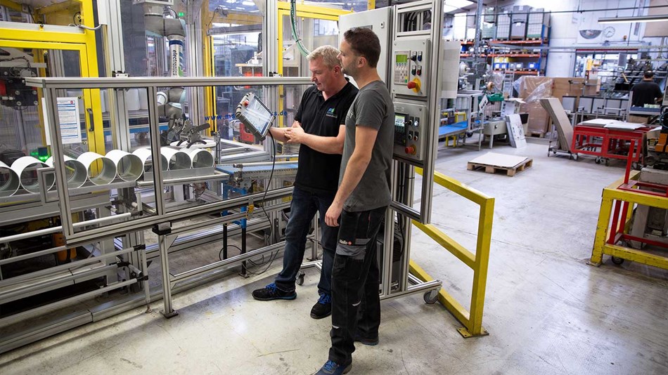 由于生產(chǎn)梯子的設(shè)備幾乎沒有空間,因此海格工廠的生產(chǎn)經(jīng)理Meik Schmidt和工藝經(jīng)理Heinz Hild都在尋找一種緊湊的自動(dòng)化解決方案,該解決方案應(yīng)易于集成到生產(chǎn)線中。通過展覽會(huì)和雜志,兩個(gè)人開始意識(shí)到協(xié)作機(jī)器人技術(shù)可以使人與機(jī)器安全地共存。