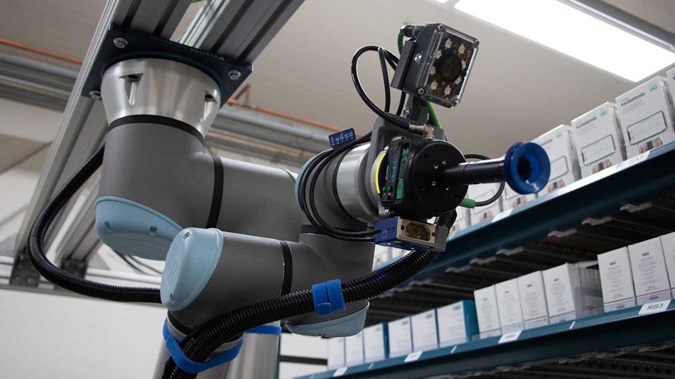 DCL Logistics的自動化團隊使用UR +在線平臺以及仿真器來研究和選擇適合該應用程序的外圍設備。每款UR +產品均經過測試和驗證,加上UR CAPS軟件,使該過程即插即用,而無需學習機器人的命令。DCL選擇了Piab piCOBOT夾持器和DataLogic攝像機,它們可以同時掃描多個條形碼,或者掃描部件號和序列號。