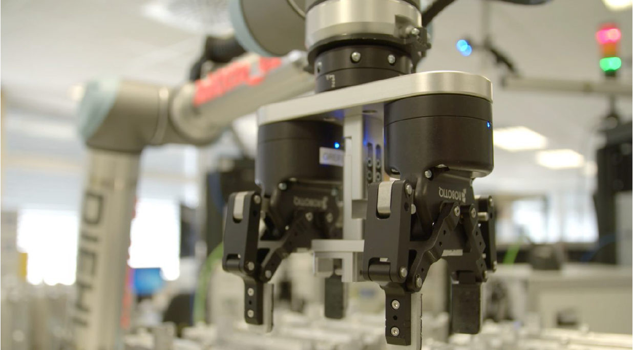 Diehl Aerospace為空客A350 XWB生產(chǎn)計算機系統(tǒng)。 由于這架飛機的訂單如火如荼,他們的質(zhì)量測試部門需要迅速增加容量。 無需實施昂貴的永久夜班,因為結(jié)合了兩個Robotiq 2F-85自適應(yīng)夾爪,Robotiq FT 300力扭矩傳感器和Universal Robot UR10的自動化解決方案提供了高效且靈活的機器人單元。