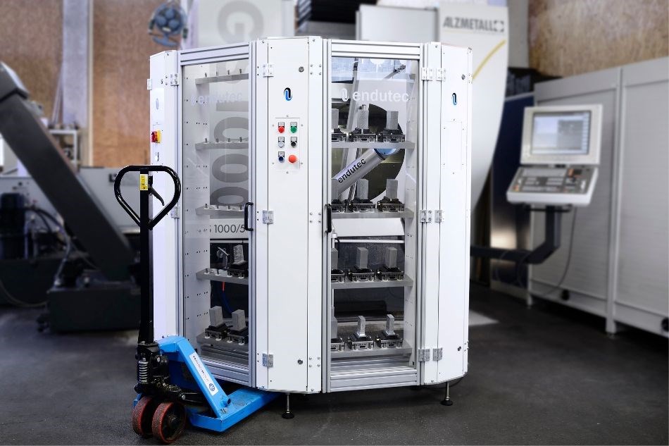 由于某些零件較為鋒利,所以仍然設置了圍欄。盡管需要安全保護,但裝載站節省空間且靈活。如有必要,可以使用叉車輕松移動,并且在設置安全措施后,可以裝載另一臺CNC機床。UR協作機器人由于易于編程和處理而特別有說服力。而e系列優傲協作機器人型號具有集成的力 - 扭矩傳感器,可以將工件精確插入芯片夾具中。