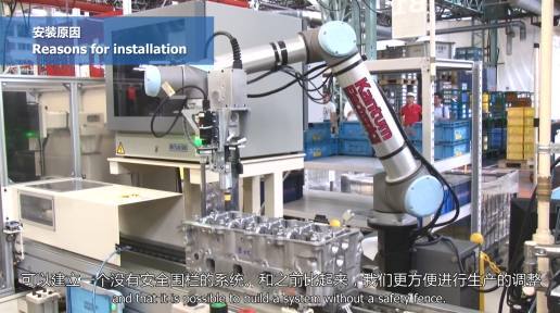 經(jīng)過嚴(yán)謹(jǐn)?shù)膶Ρ群驮u估后,日產(chǎn)汽車選用了UR10協(xié)作機器人,替代人力把總重約6公斤的進氣管搬運到工人面前,再由工人直接進行組裝。這一人機協(xié)作模式保證了穩(wěn)定的生產(chǎn)節(jié)拍,使得生產(chǎn)效率提到提高。此外,還大大減少了工人的勞動負(fù)荷。