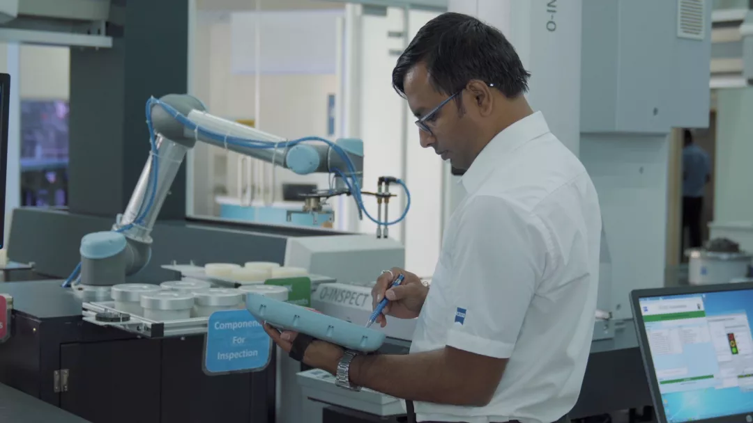 “有一名操作工時我們的生產(chǎn)力是50%。但是現(xiàn)在,將該系統(tǒng)與協(xié)作式機器人整合后,每臺機器的使用率超過90%。系統(tǒng)因此干凈利索,靈活有余,而且新系統(tǒng)一到兩天就可調(diào)整完畢。有協(xié)作式機器人,前景光明!要想實現(xiàn)全天候生產(chǎn),唯一的解決方案是采用協(xié)作式機器人。”Ravikumar Sirige,Carl Zeiss India (Bangalore) Pvt. Ltd.,工業(yè)質(zhì)量解決方案部門經(jīng)理說道。