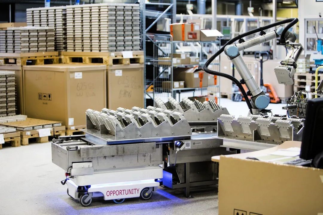 自主移動機器人是MiR1000工廠車間叉車的一種協作,安全和靈活的替代方案。諸如此類的最新型號不僅具有1,000千克(2,200磅)的有效載荷,而且還可以在動態環境中自動拾取,運輸和運送貨盤,從而將人員從高風險的環境中撤離。