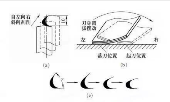 首先第一刀刮出一個(gè)弧形花紋,然后在第一個(gè)弧形花紋稍下的地方刮出第二個(gè)弧形花紋,這樣就可刮出一個(gè)近似燕子的花紋,如圖3 b所示。