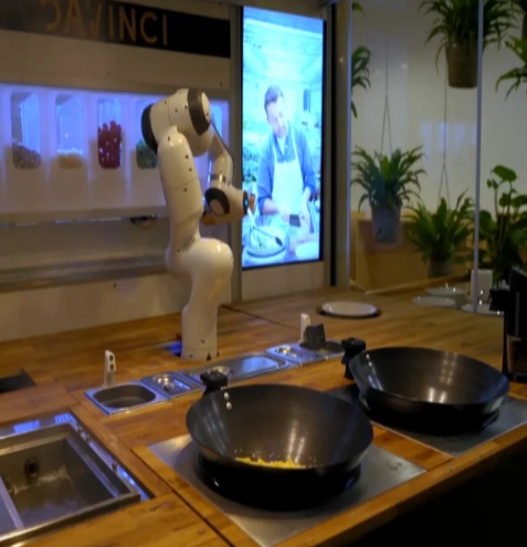 Franka機(jī)器人可以安置在廚房里,只要給它設(shè)定好程序,就可以按照程序做出相應(yīng)的美食。